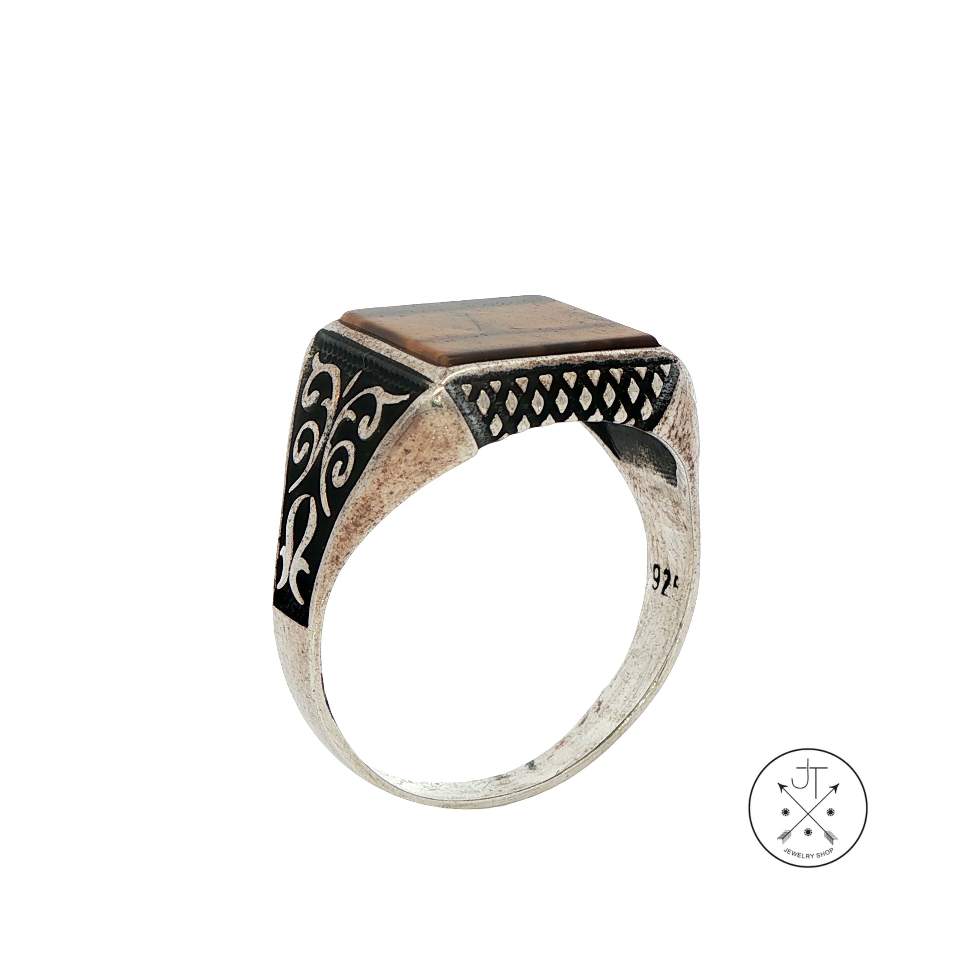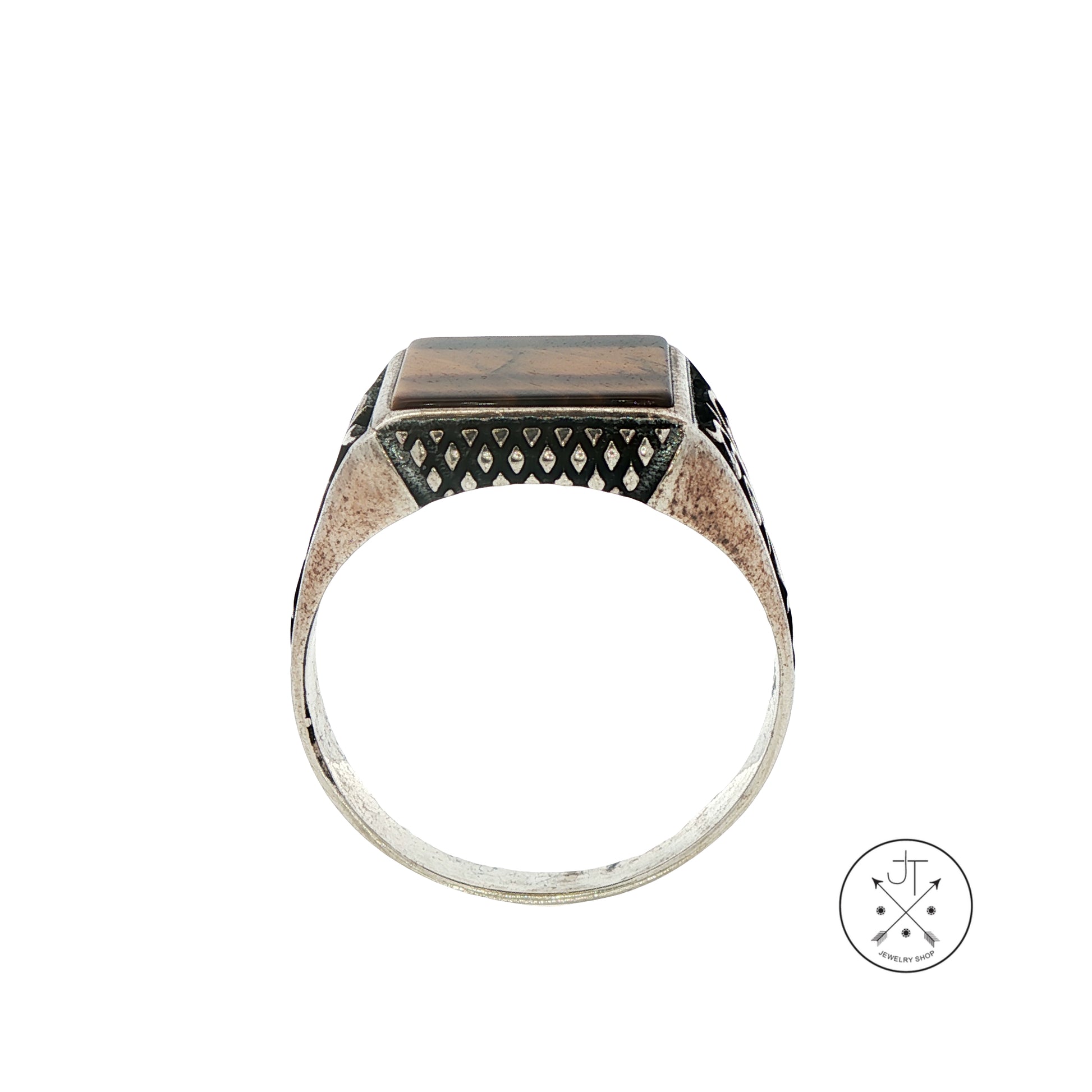 Vintage Sterling Silver Mens Ring with Tigers Eye Size 12.25