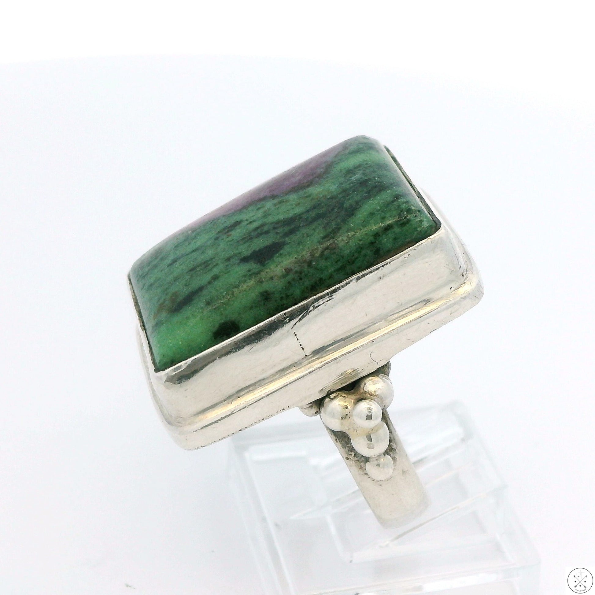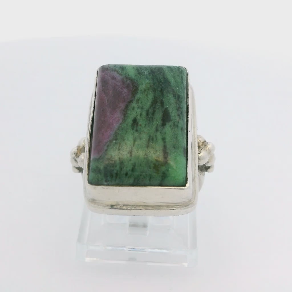 Vintage Sterling Silver Ring with Ruby in Zoisite Size 8 Rectangle