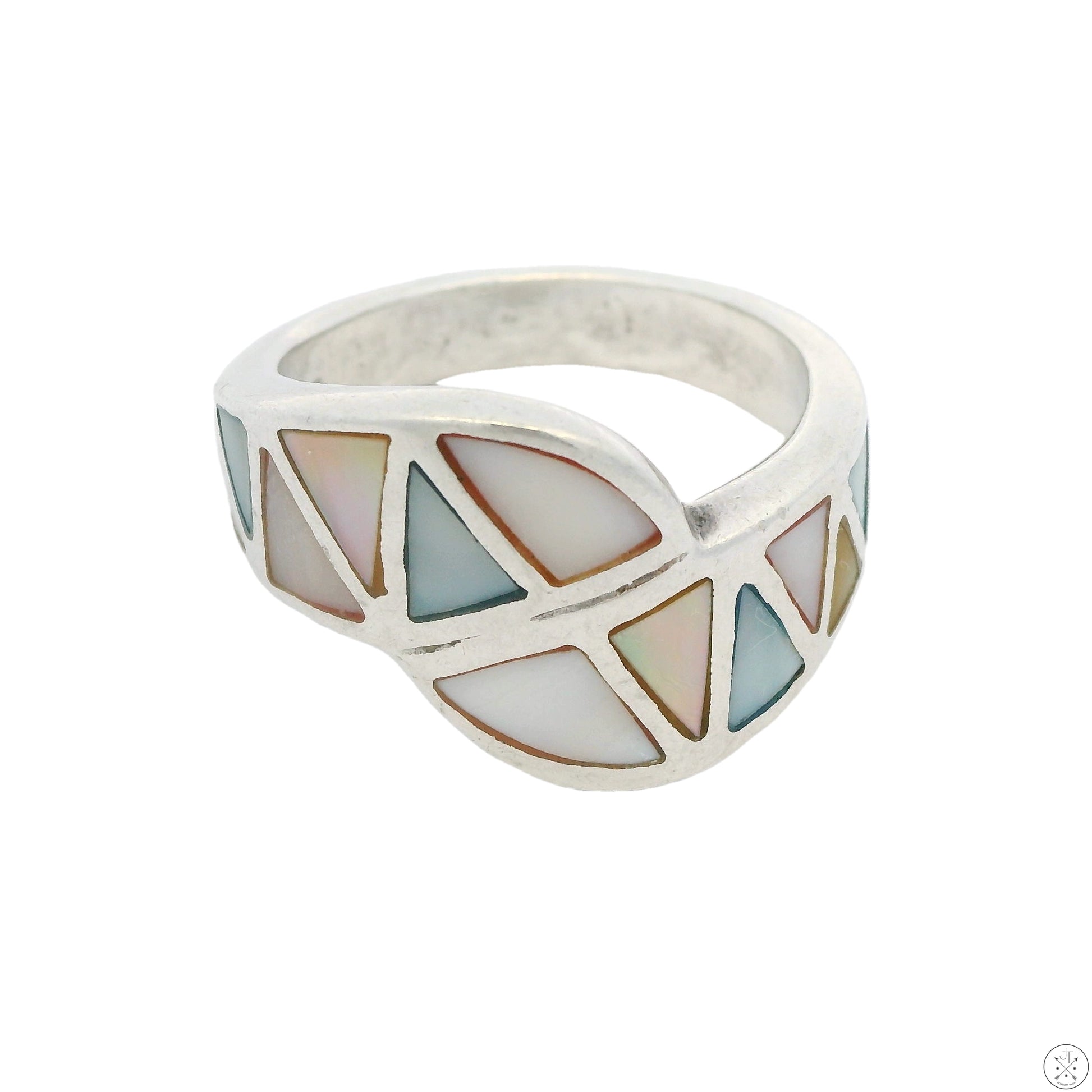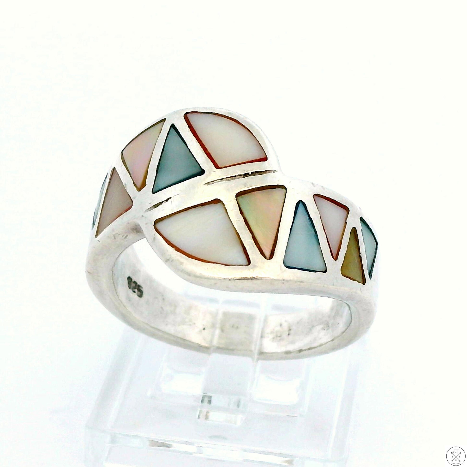 Vintage Sterling Silver Wide Band with Mother of Pearl Inlay Size 9